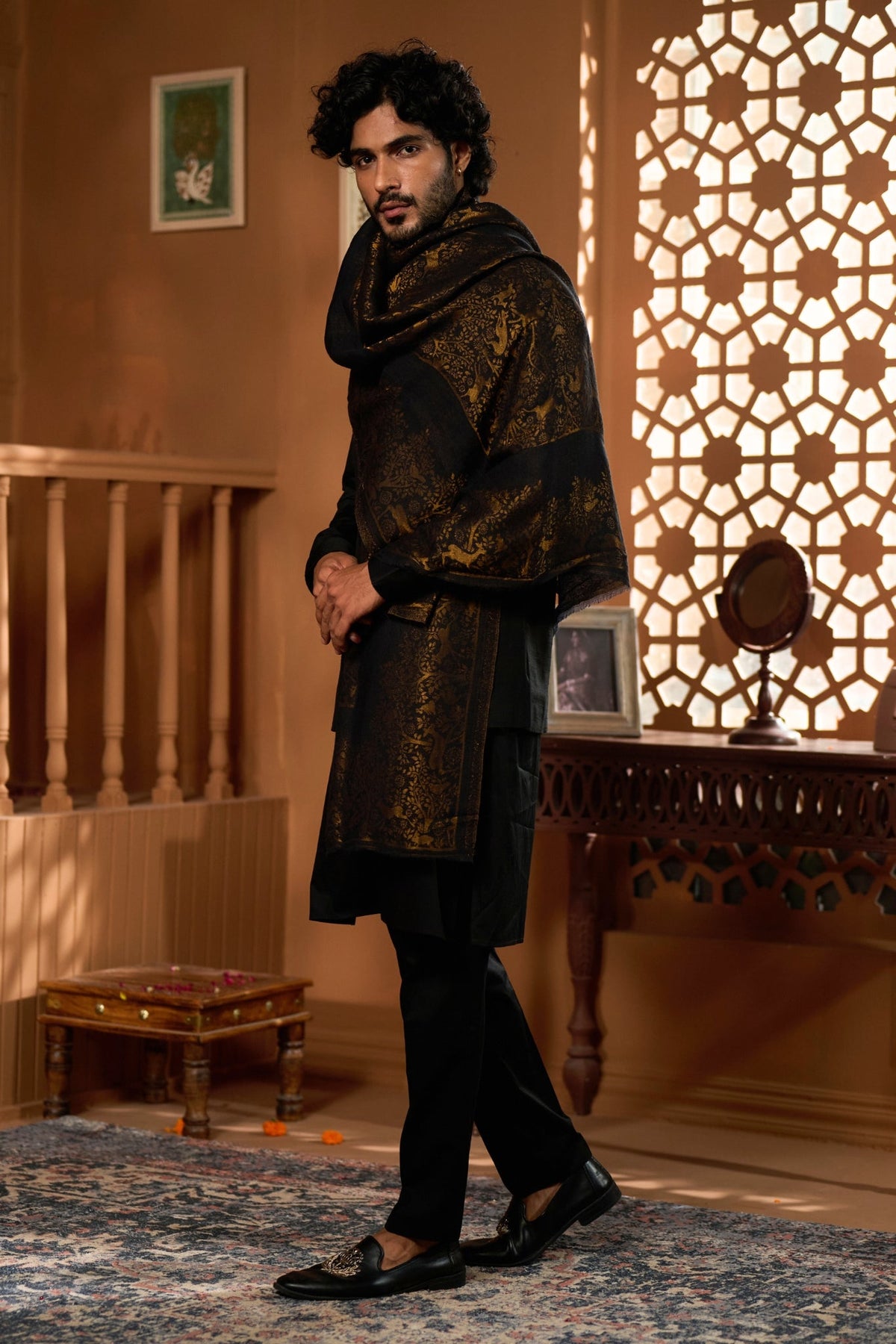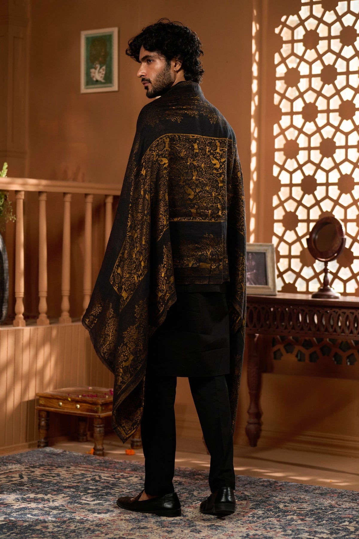 Taroob Fine Wool Shikara Zari Stole